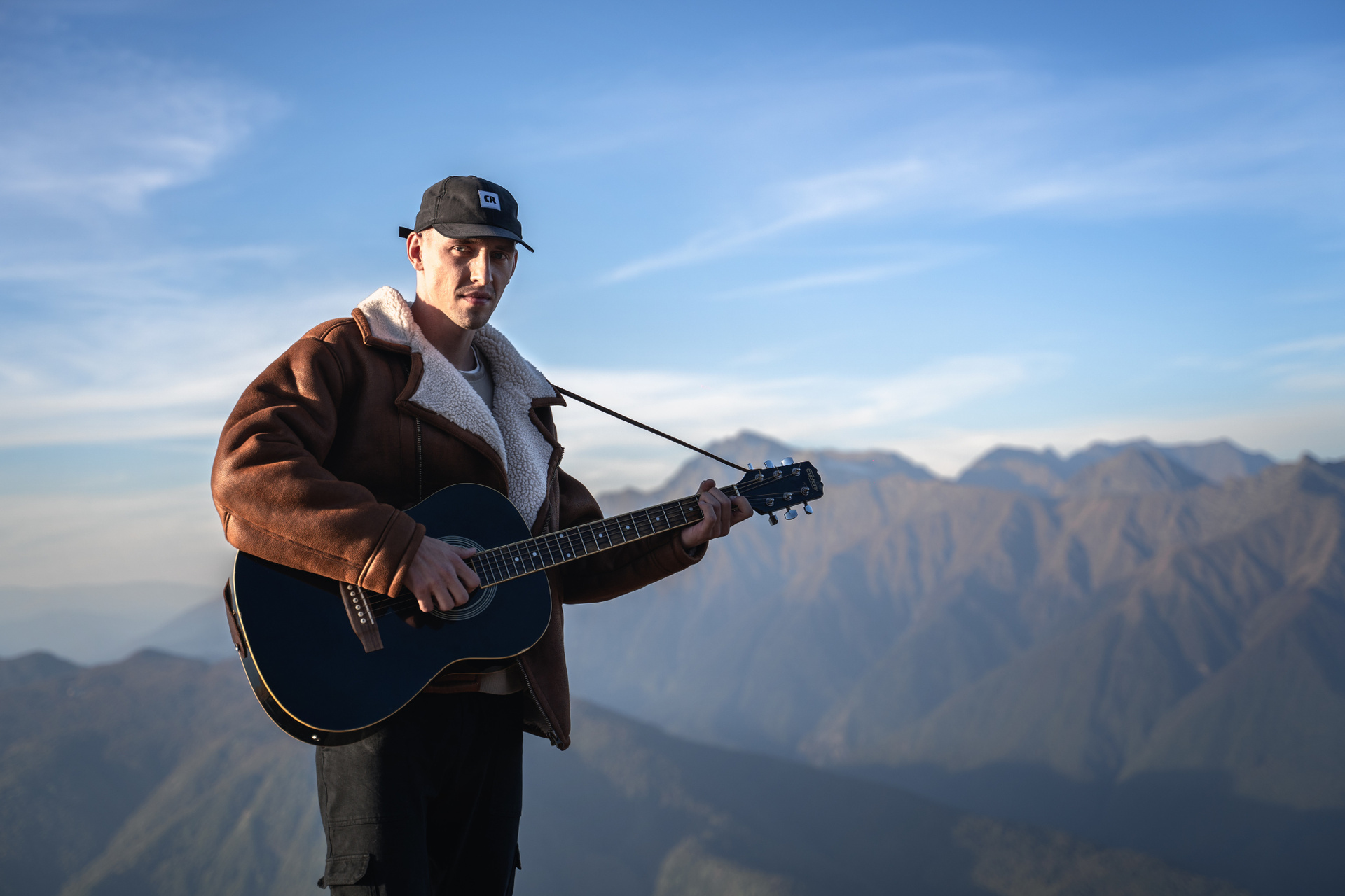 HENSY на фоне гор играл на гитаре с эмоциями, передающими его чувства.